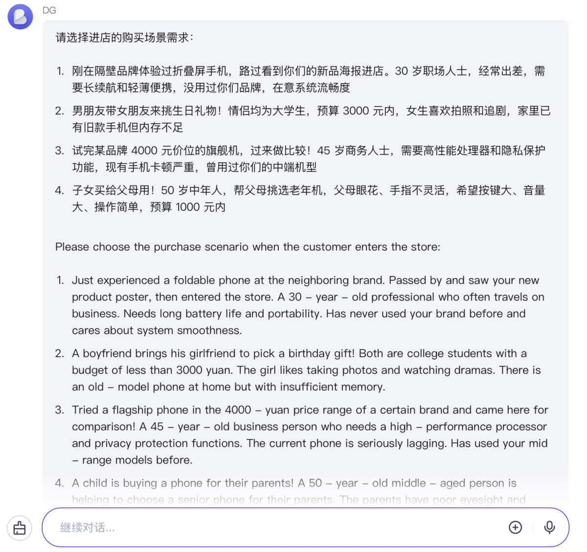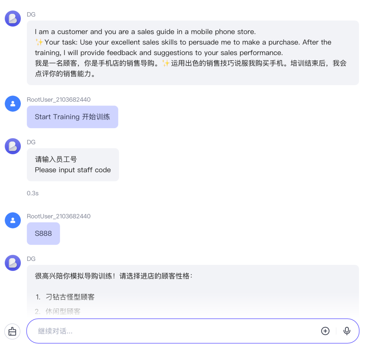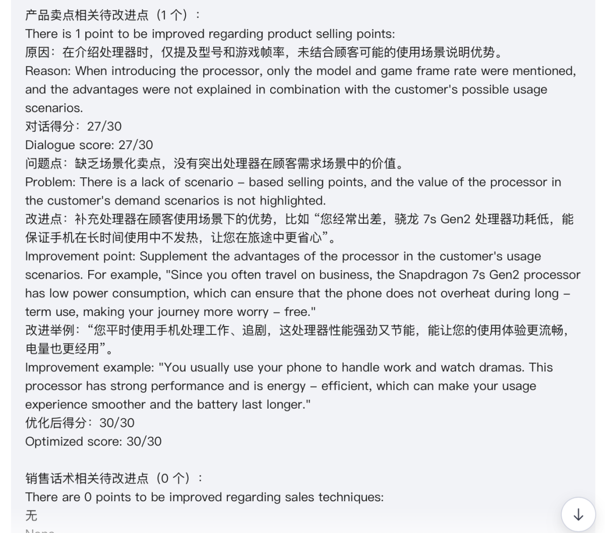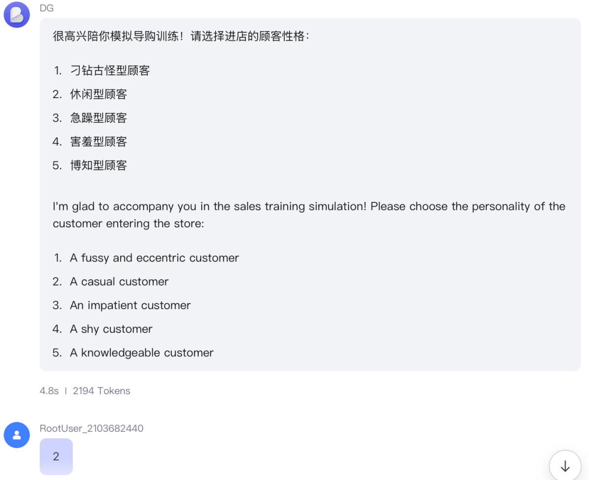 Finally, the AI will evaluate the communication process between the shopping guide and the virtual customer and provide optimization suggestions.
