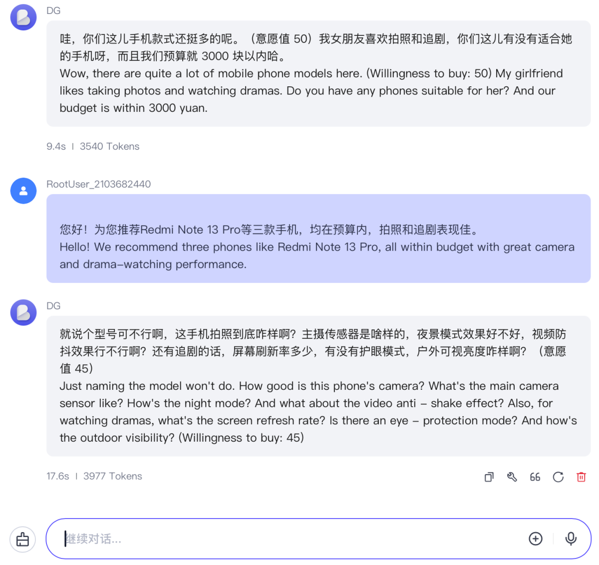 After supplementing detailed explanations to the customer's questions, the customer's purchase willingness score has risen to 55 points.
