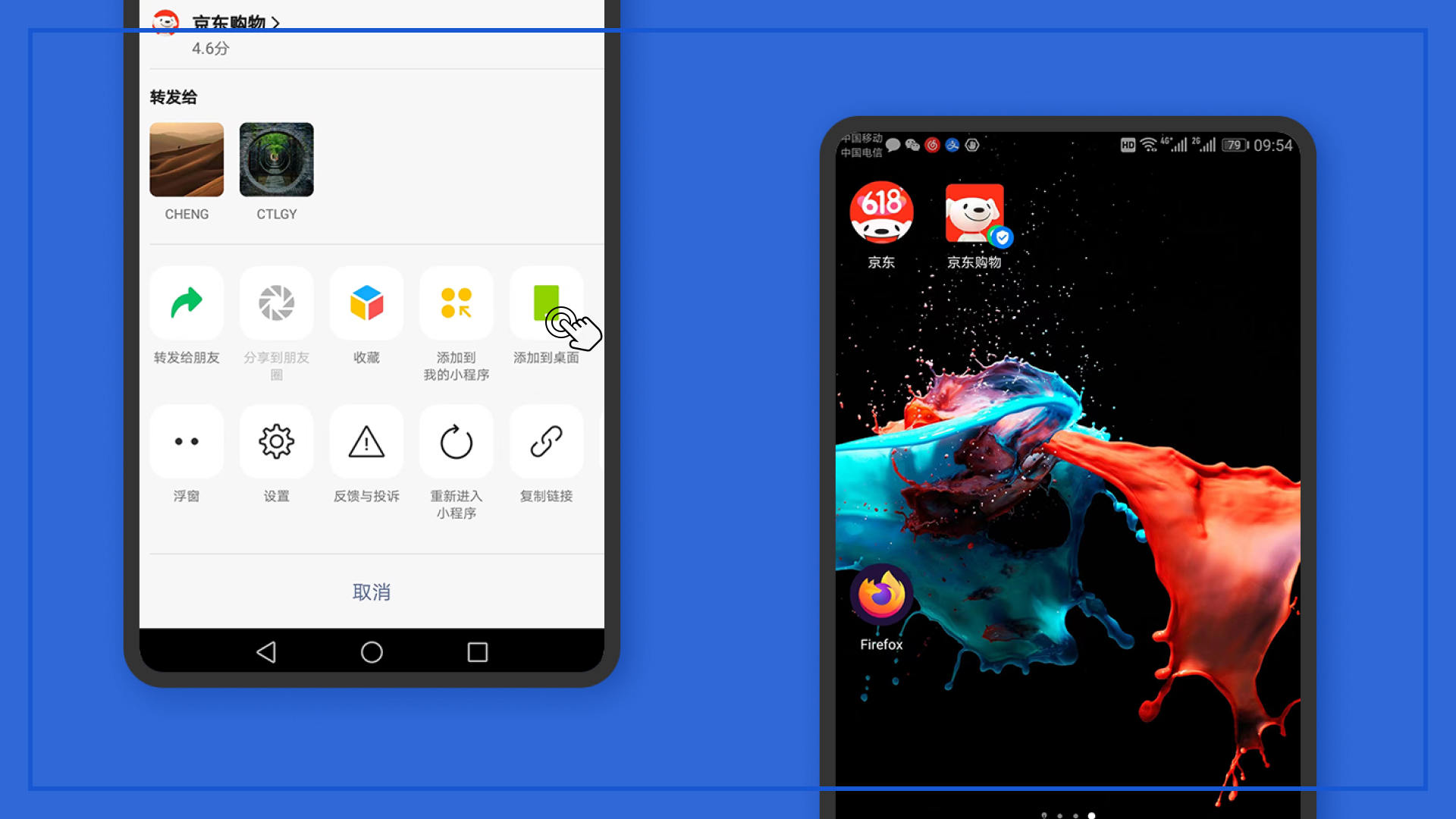 Android phone users can create a shortcut for mini-program on the desktop. Like an APP, the shortcut allows users to quickly access the applet and go back to the desktop after exit. This is a real "use it and go" operation without the need to enter WeChat's mini-program section.