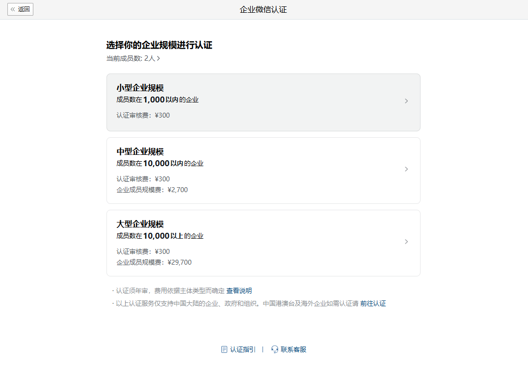 - For medium-sized enterprises (with a member size of 1001 to 10,000) with the entity type of "Enterprise", the fee for enterprise member size is RMB 2,700 per time.