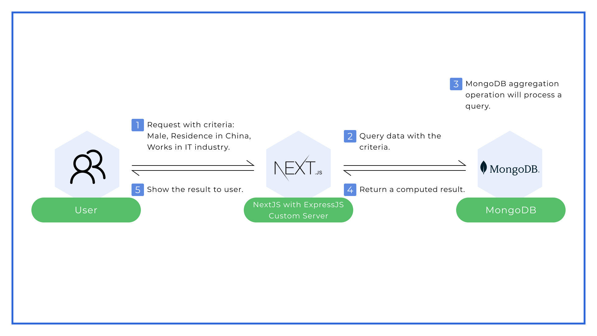 - The backend side application takes the submitted criteria queried on the database;