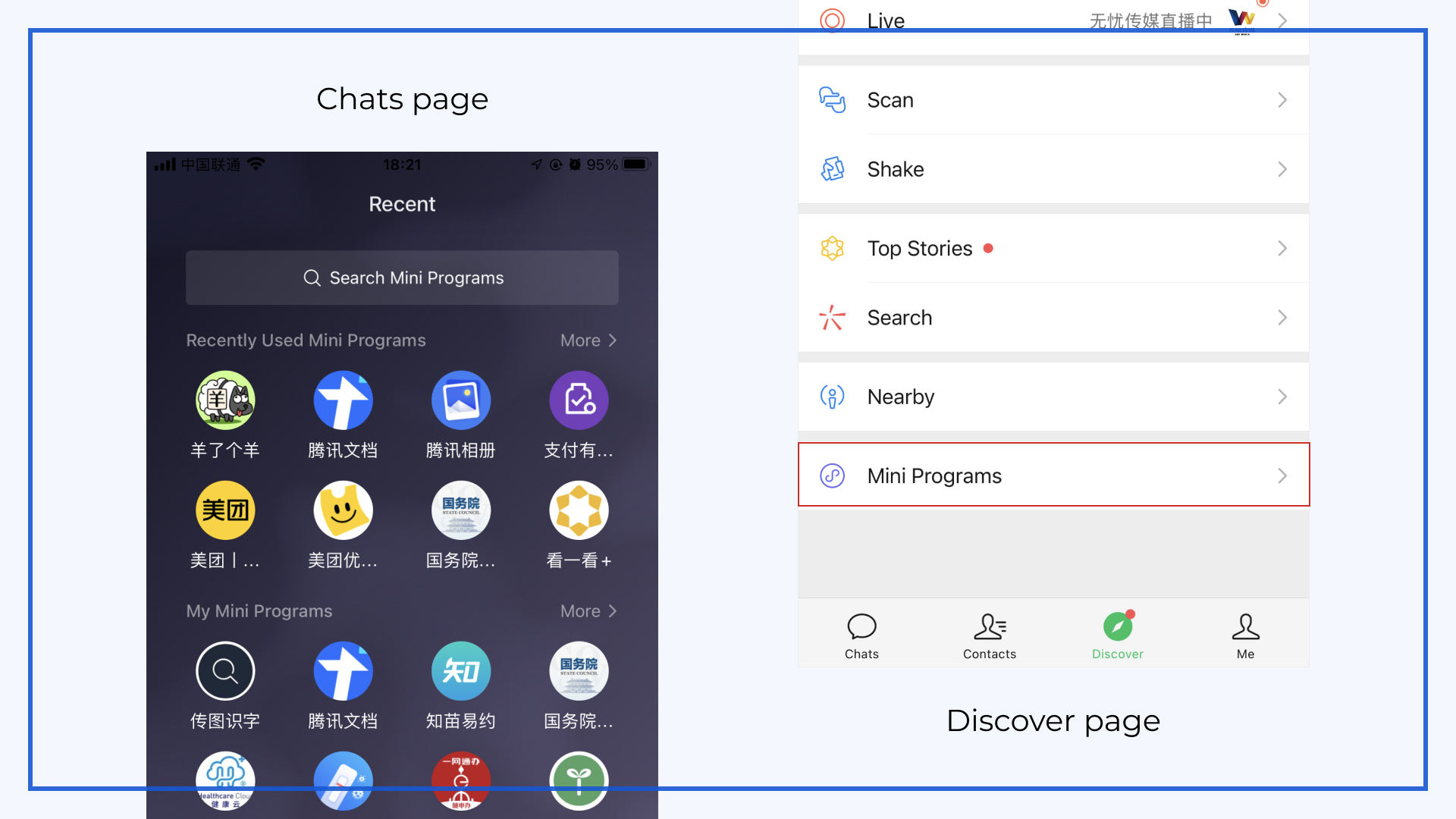 Mini Programs are not available in app stores. To find and install one, you will have to search for it on WeChat, scan a QR code from a street advertisement, receive it within a WeChat group or from a friend, find it linked to a WeChat Official Account, or come across one in your WeChat moments.