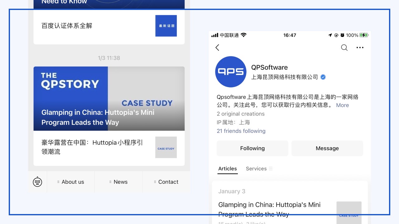 QPSoftware is a leading web agency specializing in the Chinese market and we have extensively used WeChat to support our clients’ operations in China. We can assist you in opening a WeChat Official Accountdeveloping WeChat Mini Programs, or in planning an effective marketing campaign.