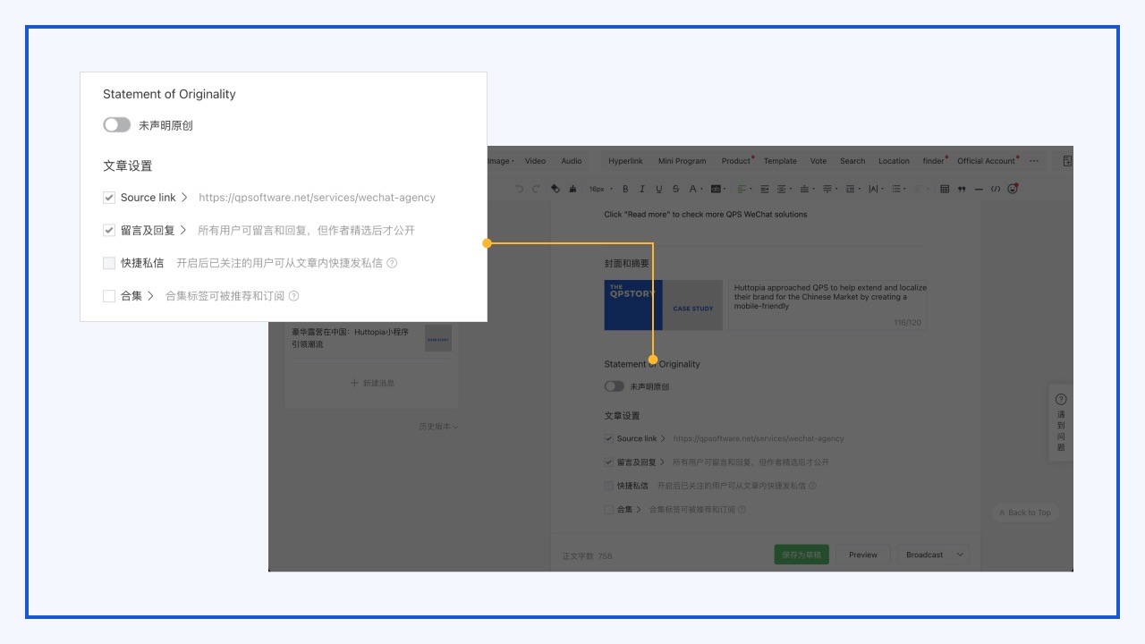 Articles posted by WeChat Official Accounts have a variety of unique features as well for businesses: