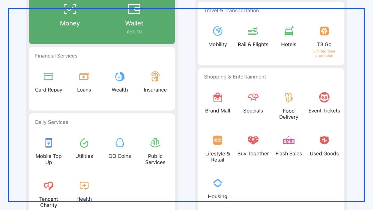 WeChat Pay also enables a host of WeChat Services for users such as paying for credit card bills, taking out loans, topping up your mobile plan, paying utility bills and other various public services, booking rail and flight tickets, hailing taxis, booking hotels, buying movie tickets, and much more.