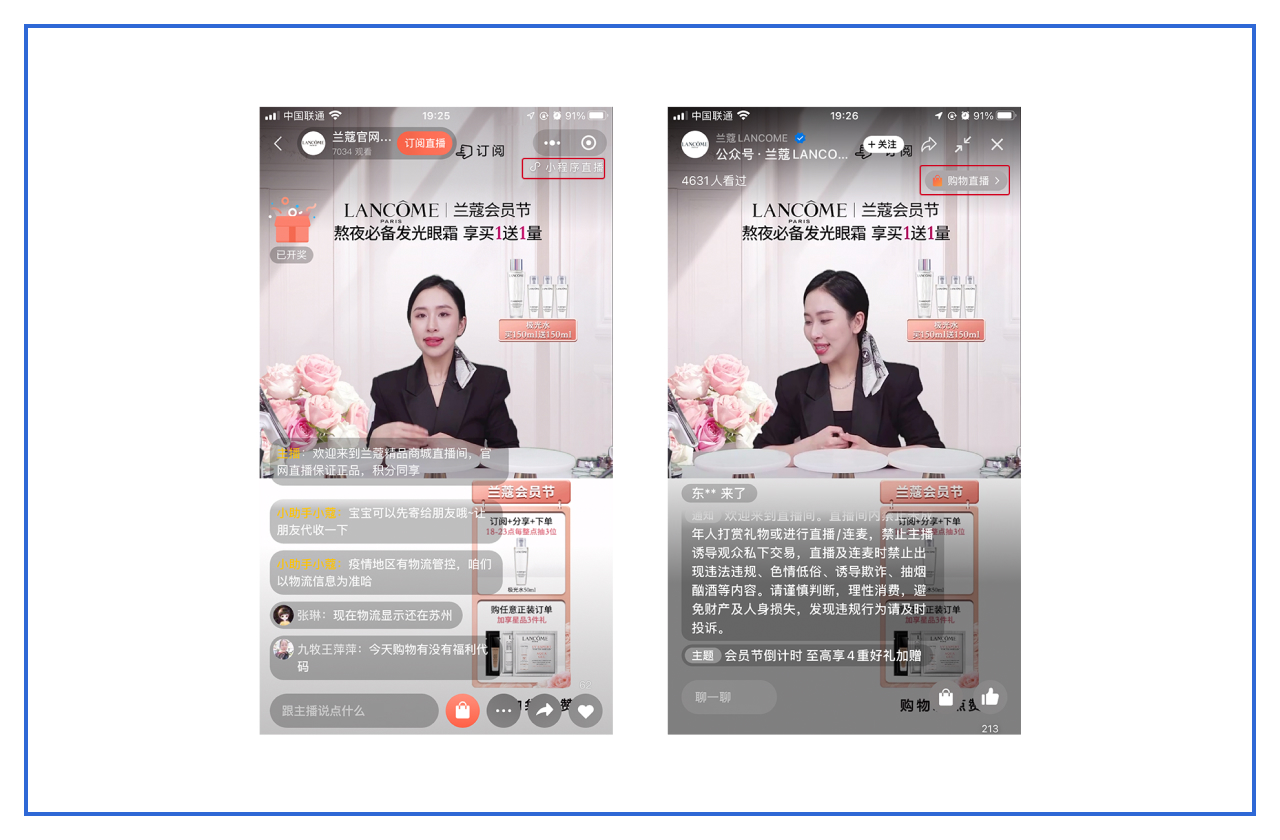 Through combination of e-commerce mini-program and livestreaming, mini-program livestreaming provides an immersive closed-loop shopping experience. While watching the livestreaming program, users may simply place an order for goods. The entire process requires no jump-out and thus helps improve the conversion rate. Interactive functions in the studios including lottery draw, coupons, likes and comments not only promote sales conversion, but also enhance user loyalty and brand communication and enhance the user experience.